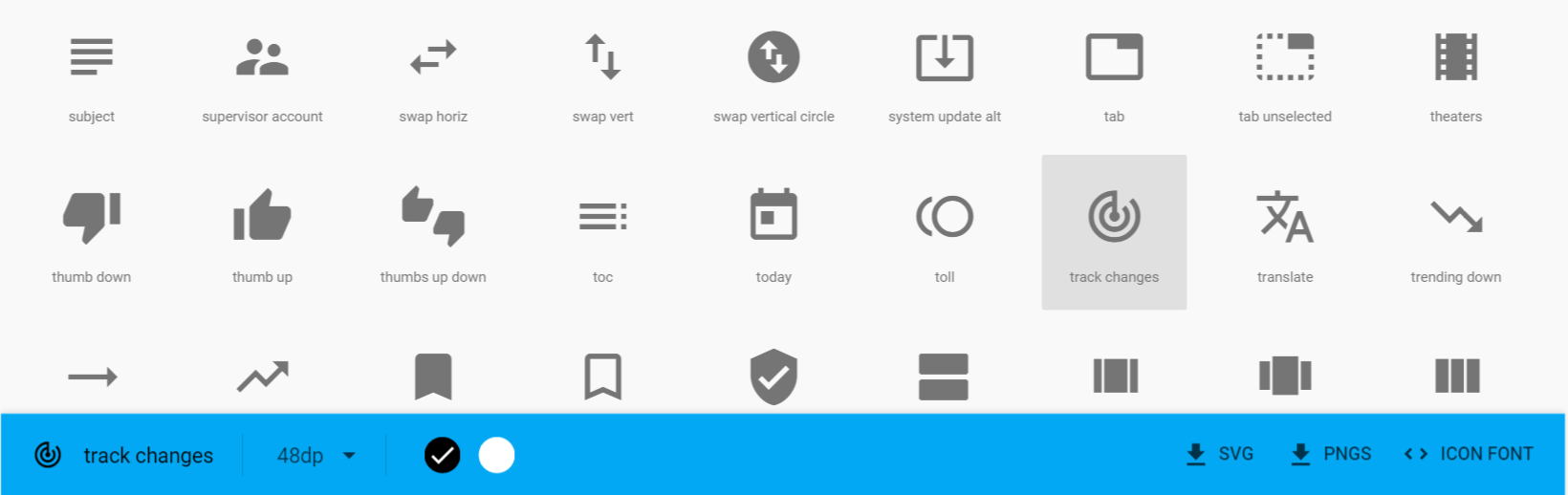 Action 아이콘과 시스템아이콘은 이름과 아이콘이 좀 난해하게 매칭된 부분도 보이는 듯하지만 새로이 올라운 아이콘 다운로더는 필요한 것들만 다운 받을 수 있어서 나름 사용자 편의를 제공한다.