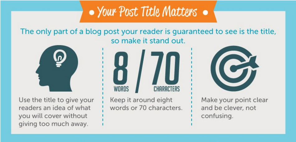그리고 중요하게 부각된 부분은 다름 아닌 블로그 포스트의 ‘제목’에 관한 것 이었다. 제목이 중요한 이유는 독자가 분명히 보게 되는 것 중에 하나가 바로 제목이라는 점이라고 강조하고 있다. 너무 많을 것을 알려주지 않고도 내용의 핵심을 알 수 있어야 하고 8자 이내에서 70자를 유지하라는 산술적 조언도 하고 있다.